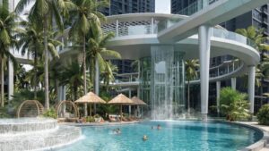 Thiết kế căn hộ tối ưu với chiều sâu từ 7,8-8,2m, hành lang rộng 1,8m tạo cảm giác rộng rãi, hướng chủ đạo Bắc-Nam đón gió từ sông Hồng giúp nhiệt độ mát mẻ hơn 3-5°C so với khu vực khác vào mùa hè. Mỗi tòa có 3 tầng hầm để xe, tầng 1-3 thương mại với tầng 3 bố trí bể bơi khoáng nóng, tầng 4-19 và 22-37 là căn hộ thường, tầng 20-21 là Duplex, tầng 38-39 là Penthouse với tầm view đỉnh cao. Tổng quy mô dự án cung cấp khoảng 2.636 căn hộ thuộc phân khu Alumi Premium với giá chỉ 6X triệu/m².